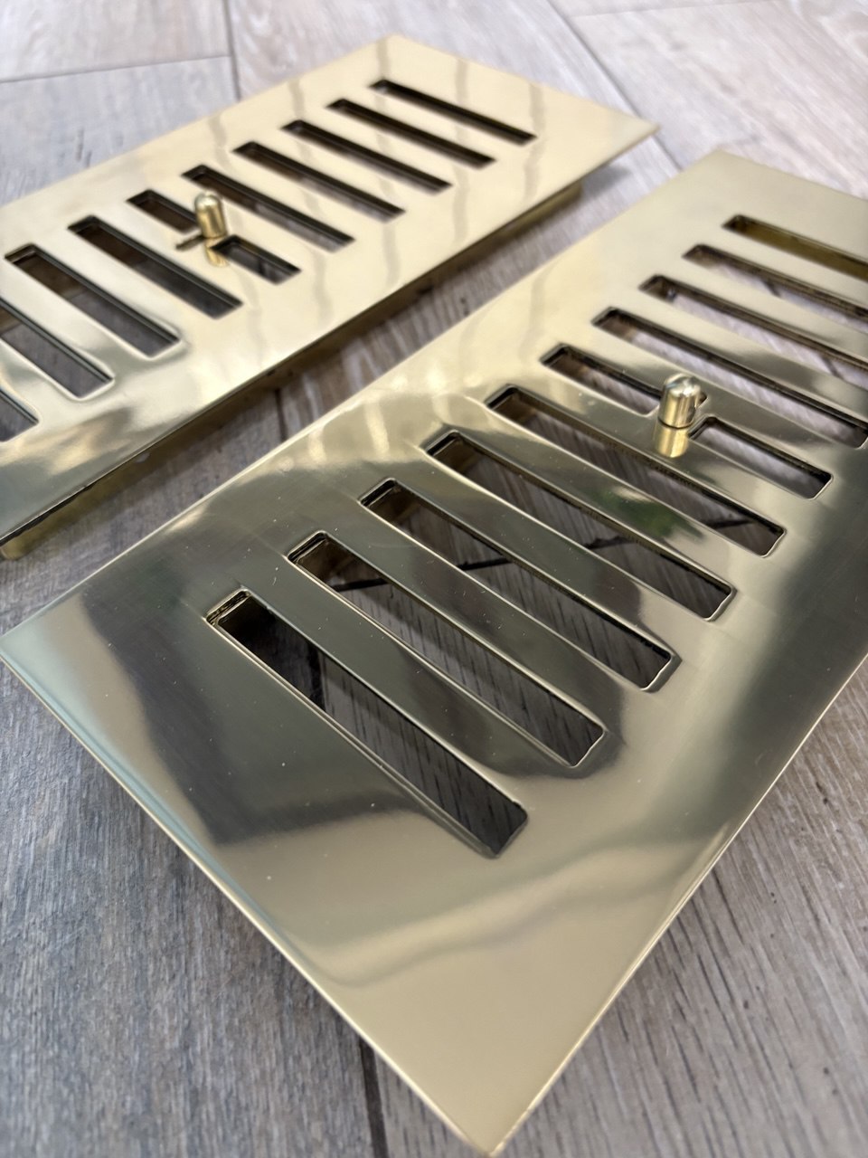 Латунная полированная вентиляционная решётка с задвижкой ЛР 355 200x100мм