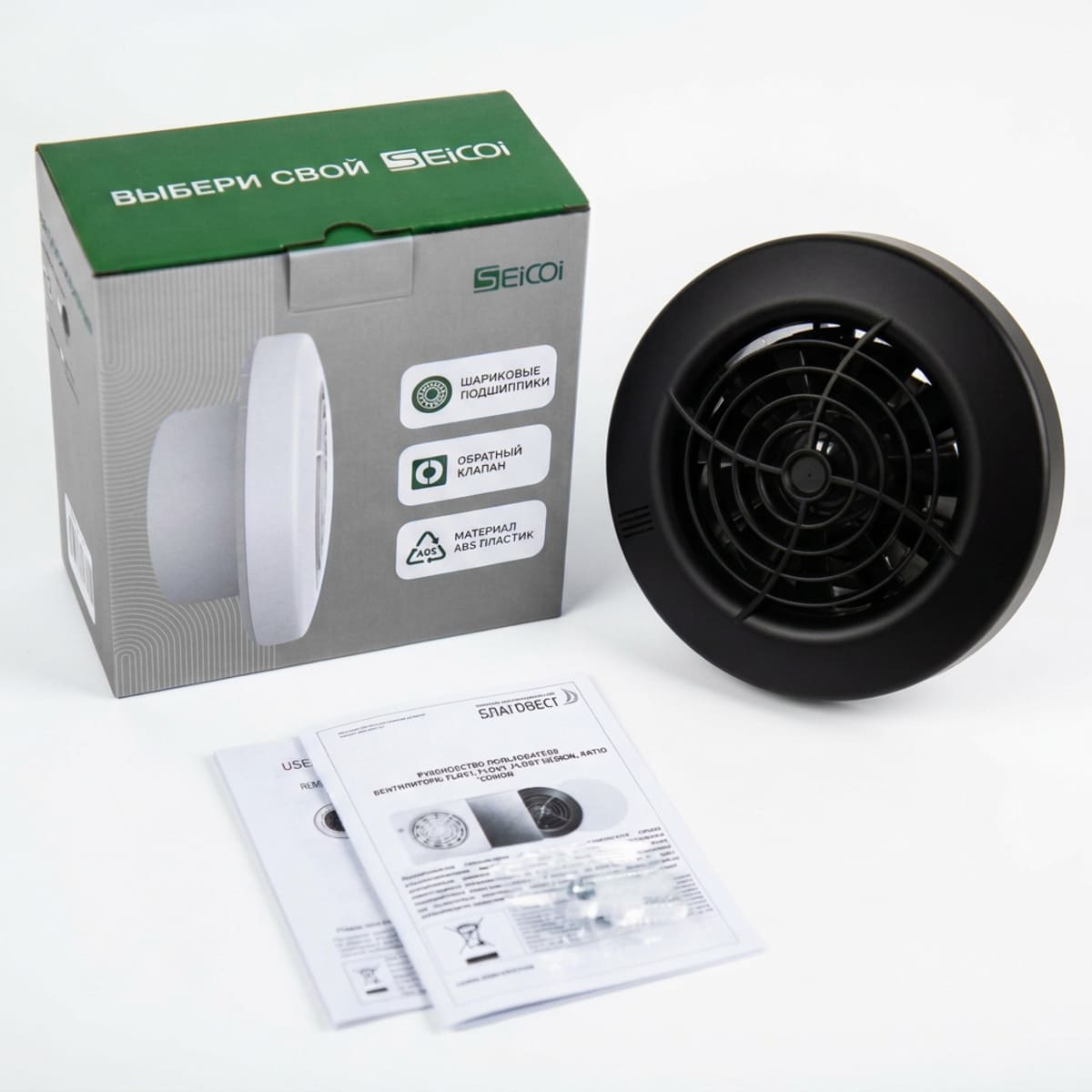 Качественный материал. Вентилятор изготовлен из высококачественного ABS пластика, который устойчив к воздействию UV излучений, влаги и пыли.